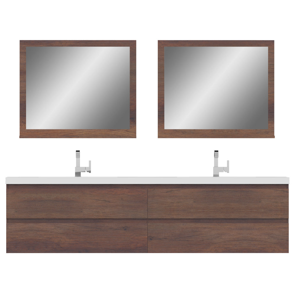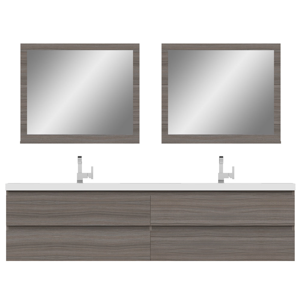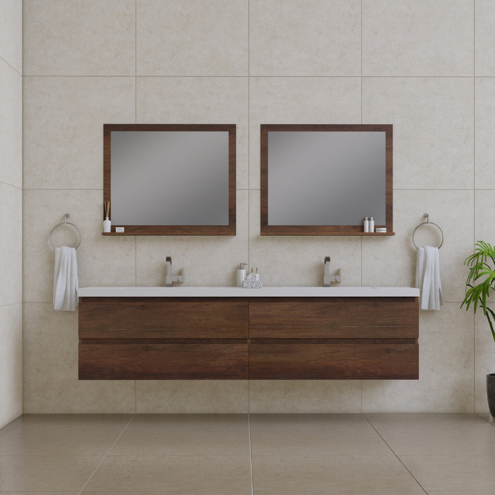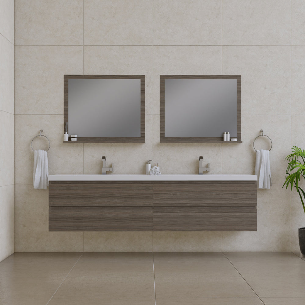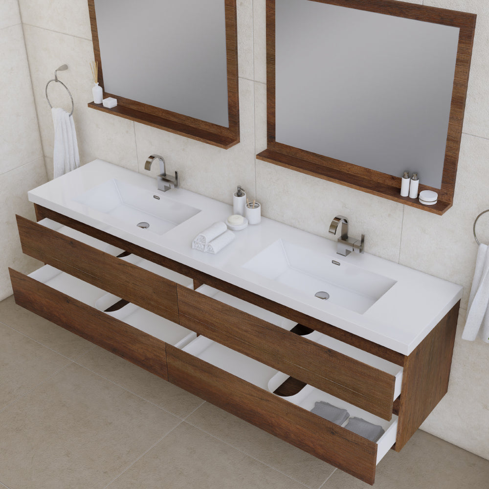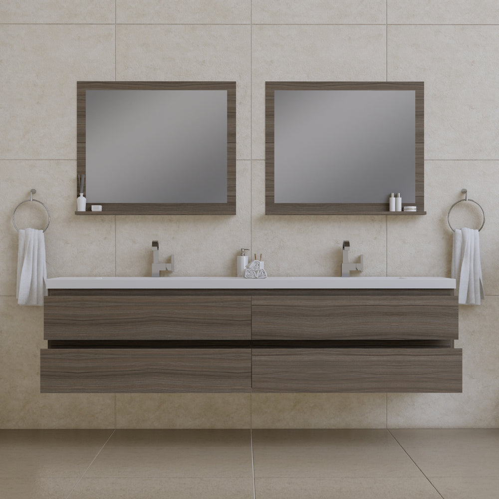 Alya Bath Paterno 84 inch double wall mounted bathroom vanity gives an updated modern look to any bathroom. This wall hung vanity offers great storage with four drawers