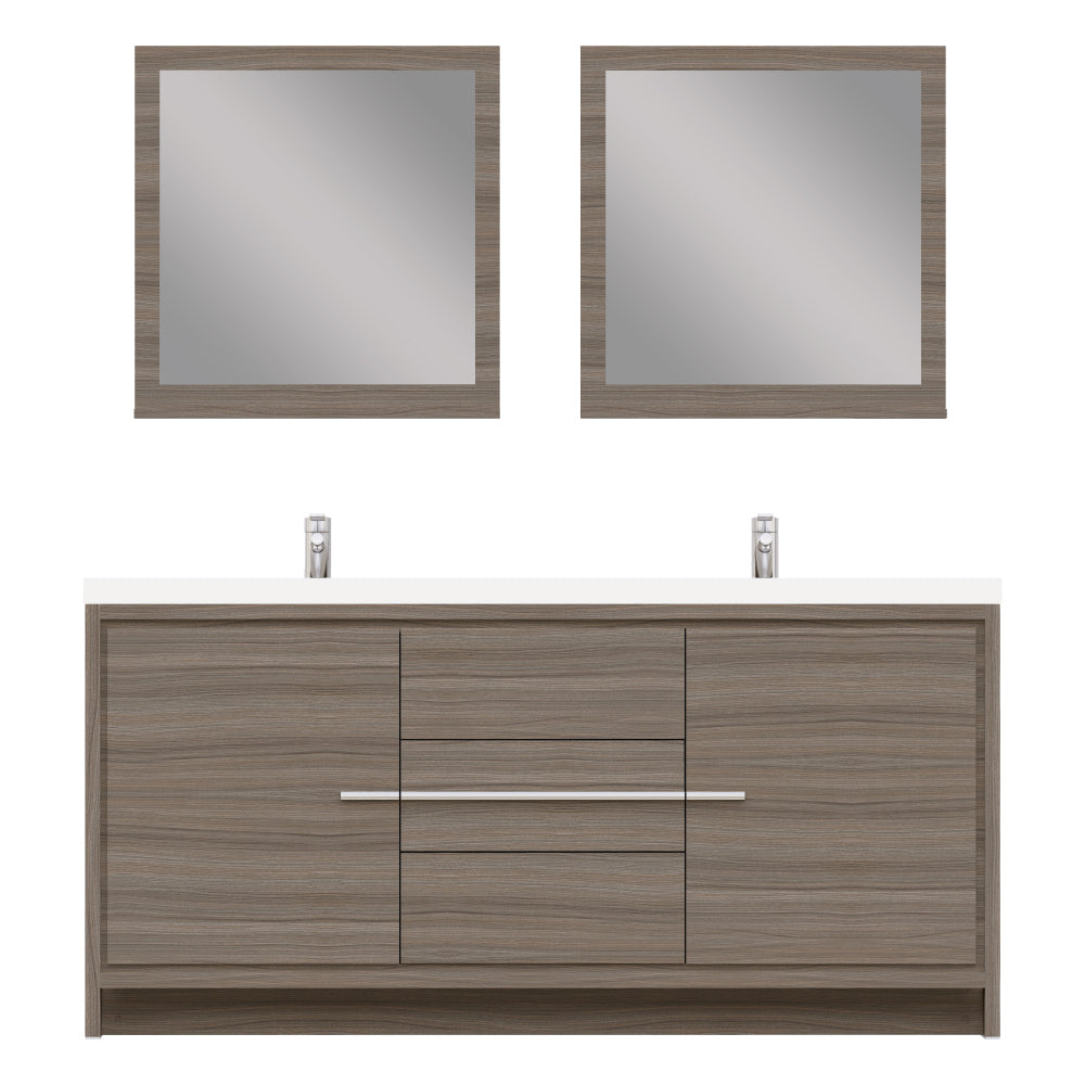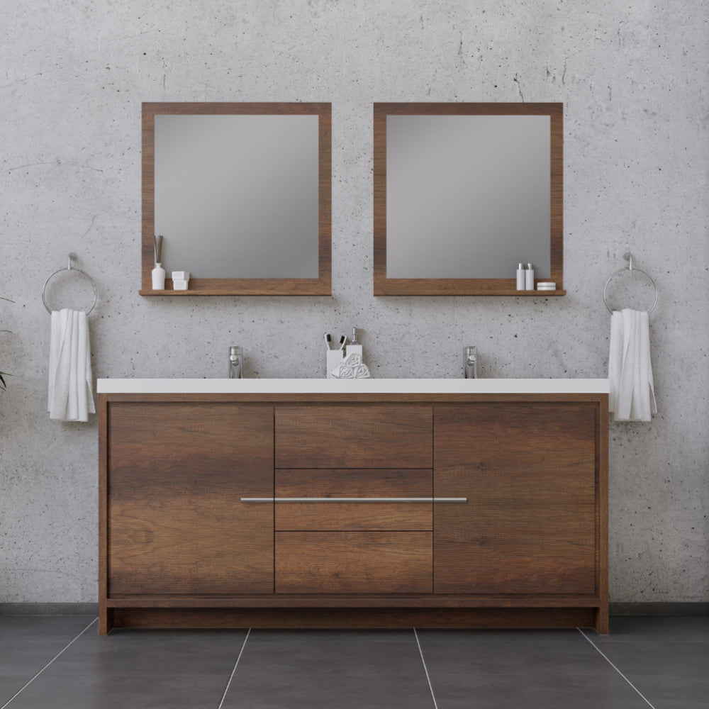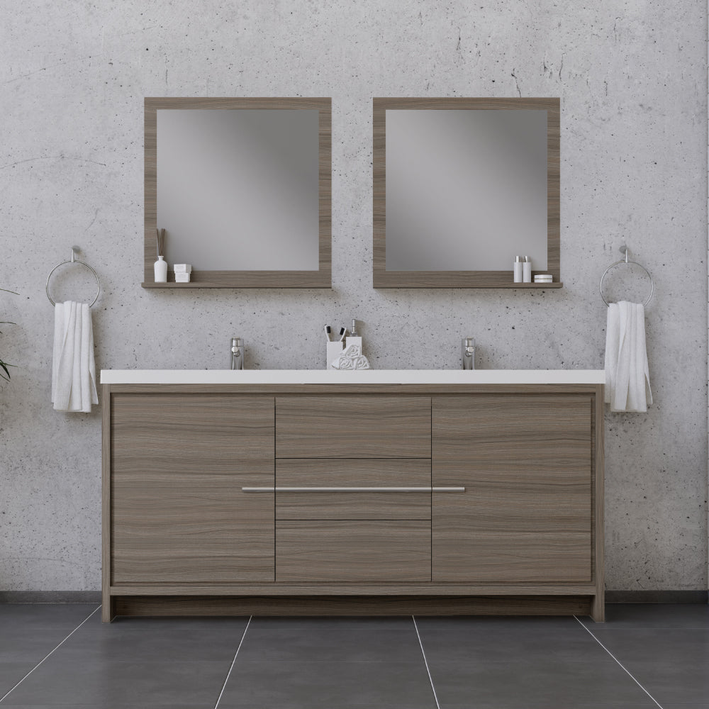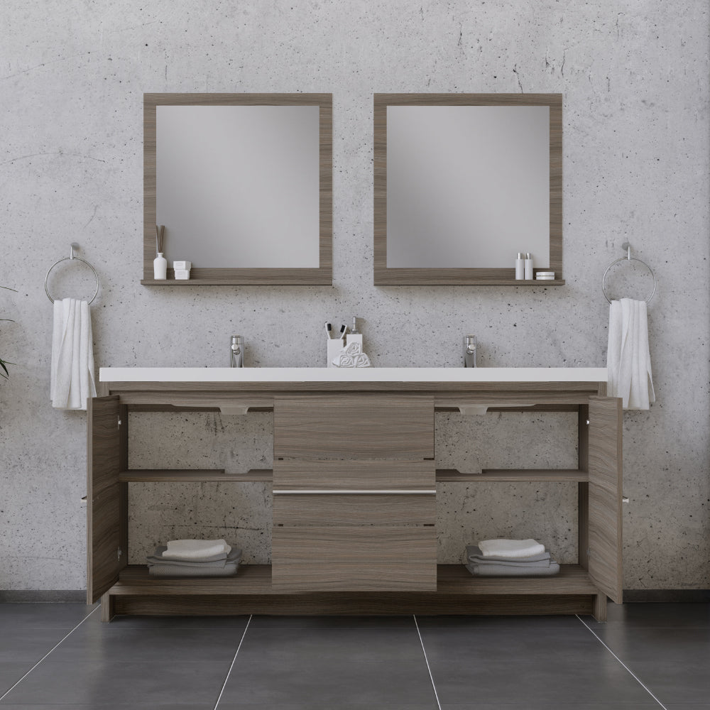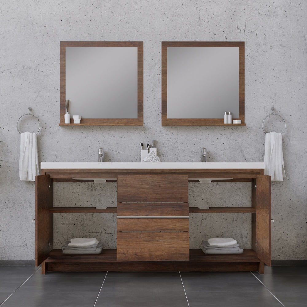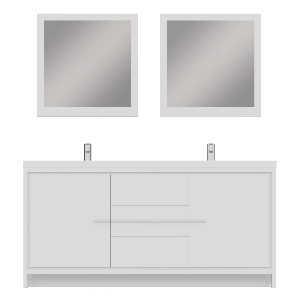Alya Bath Sortino 72 inch double bathroom vanity is a great choice for a modern bathroom. This free standing vanity offers great storage with a smooth soft-closing, fully functional three drawers and two doors. The white acrylic sink completes the simple contemporary design and clean lines brings a touch of modern into your bathroom.
