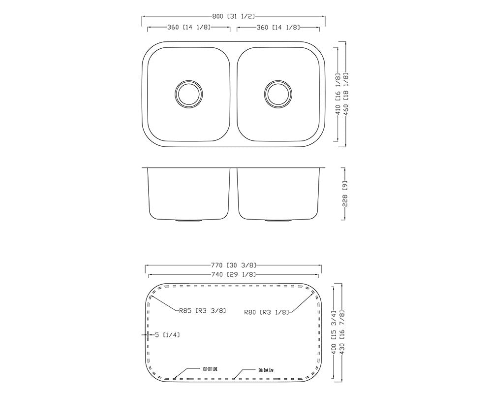 • Undermount Double Bowl Kitchen Sink