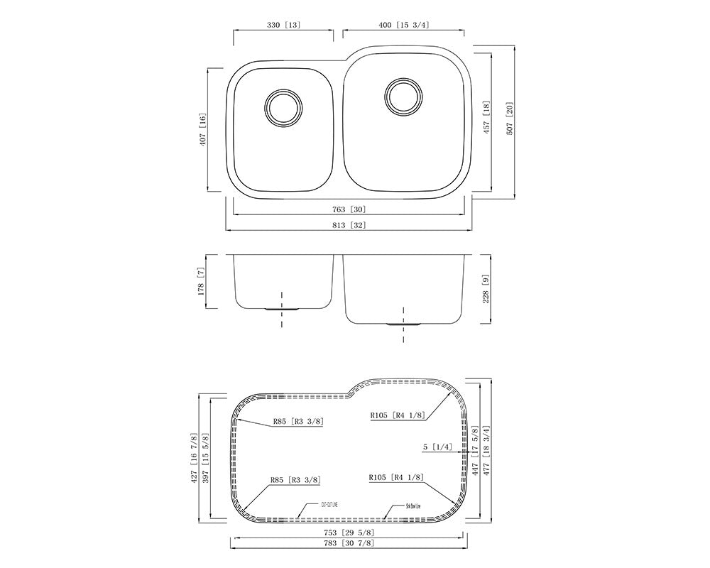 • Undermount Double Bowl Kitchen Sink