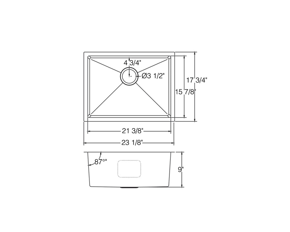 • Drain Opening: 3-1/2″