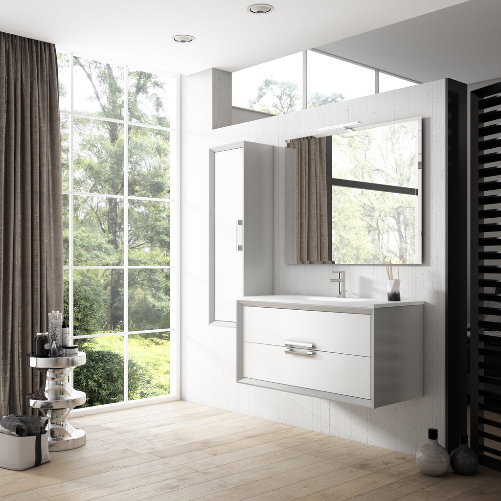 Décor Tirador Vanity 2 Drawer with Ceramic Sink, White and Silver